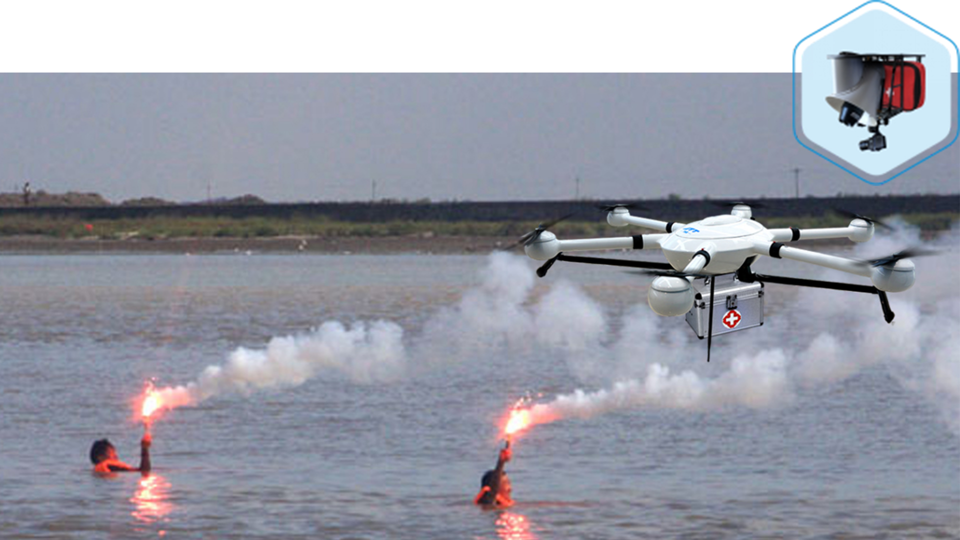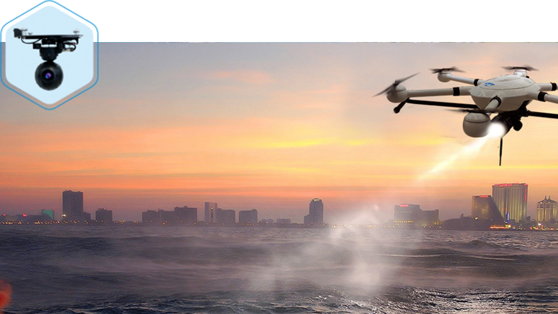 當(dāng)在海上遇到突發(fā)狀況時(shí),無(wú)人機(jī)可搭載四合一掛載在事發(fā)高空盤(pán)旋監(jiān)控,實(shí)時(shí)傳送圖像信息至指揮中心,指揮中心可以對(duì)現(xiàn)場(chǎng)進(jìn)行指揮救援行動(dòng),并且可以空頭一系列救援物品給需要救助的人員。還可以通過(guò)四合一種的喇叭對(duì)現(xiàn)場(chǎng)需要救助人員進(jìn)行疏導(dǎo)和安慰。