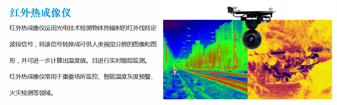 主要針對夜間光照條件差的情況下進行火點及高溫點的監控巡邏。巡邏路線可按照人流密集區域設置,鏡頭可清晰覆蓋航線周邊1km以上半徑范圍區域。三個左右航線基本可以覆蓋全部危險區域。