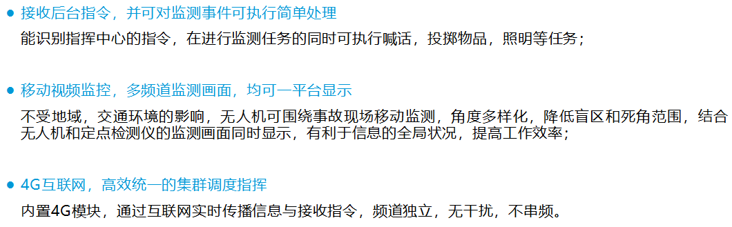 主要用于警示喊話,引導,配備有4K高清相機可對現場進行實時高清監控并回傳。
