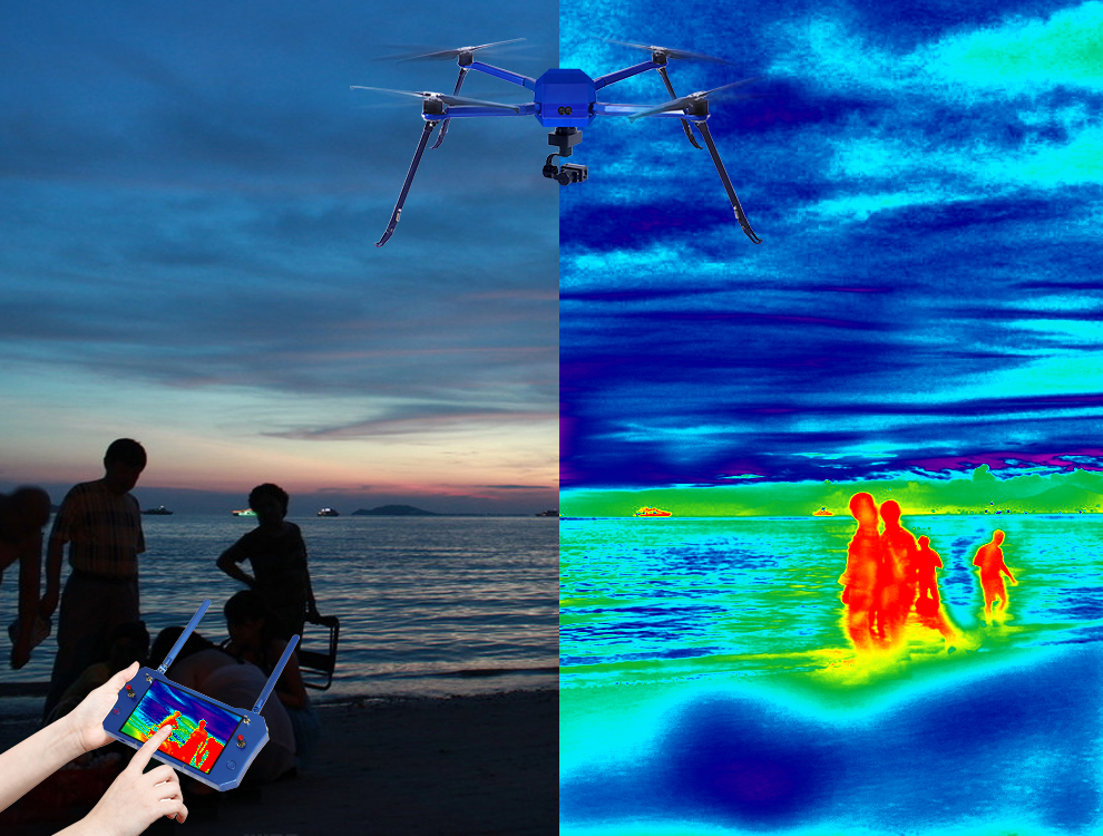在夜晚的巡邏當中,搭載的紅外熱成像儀,通過顏色、形狀、動作辨別人體的位置和狀態,協助分析是否處于危險狀態當中。