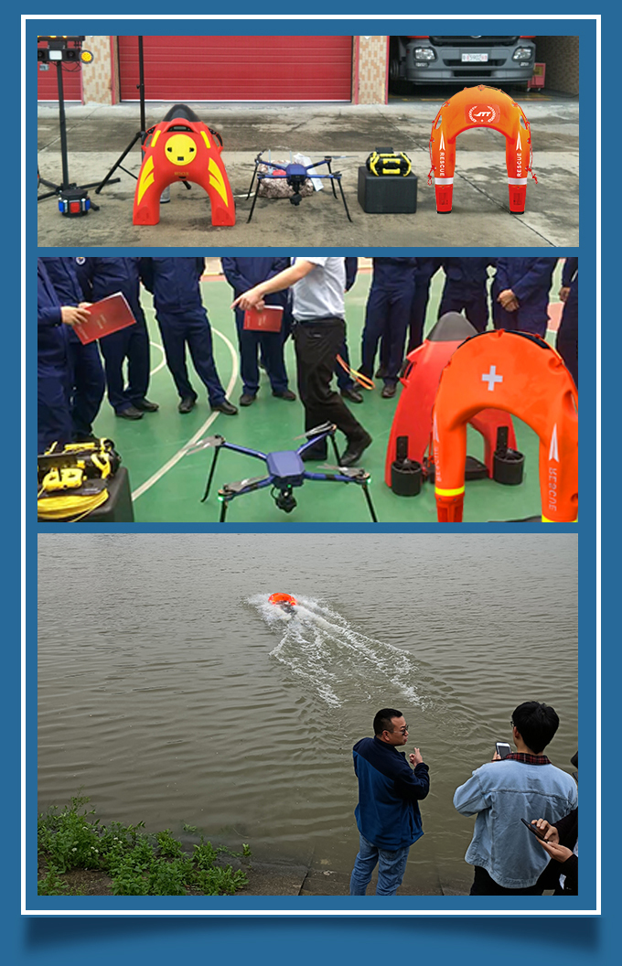空海一體模式:救援機器人能跟無人機配合實現空海一體模式,無人機能清晰傳回前方視頻,救援機器人能夠按照無人機飛行軌跡跟隨航行,實現遠距離救援