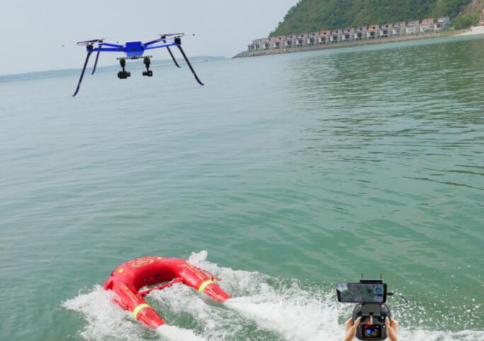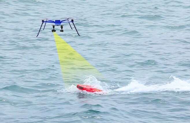 2.空海一體化聯動,水上機器人可自動跟隨隨無人機到達落水點;