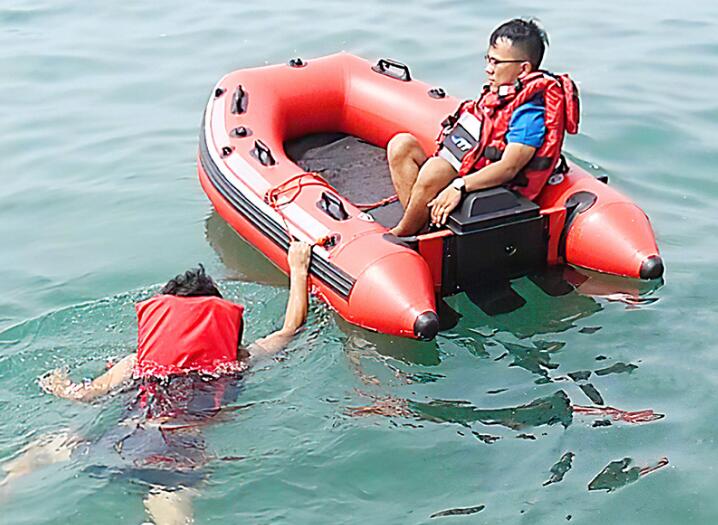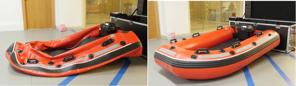 一鍵自動充氣,讓水上救援艇在洪水來臨之際,能夠迅速展開行動。當災情突發,洪水肆虐,每一分鐘都可能關系到無數人的生命安全。水上救援艇的自動充氣功能,在?壓的情況下也能夠?動充?,確保了救援人員可以在最短時間內投入行動,迅速抵達受災地區,為被困人員提供緊急救援。且艇身周邊配有示位燈能夠顯示救援艇位置。