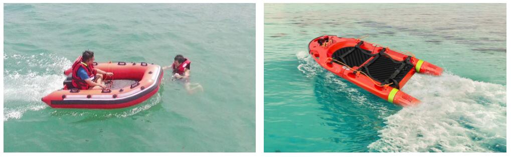 (左)T1水上救援艇、(右)T3水上加溫擔架