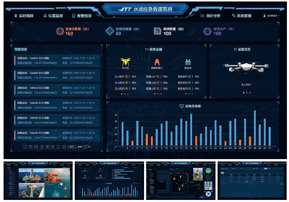 ?域應急救援系統采?C/S、B/S混合式、多層系統架構,將?域應急救援系統(空中巡查系統,?域救援系統,作業平臺AI安全預警系統,救援?員防溺?監測系統等)、報警聯動等全部融合形成統?的平臺系統,滿?了?域的應急救援需求,??降低了系統使?難度、管理效率顯著提升。