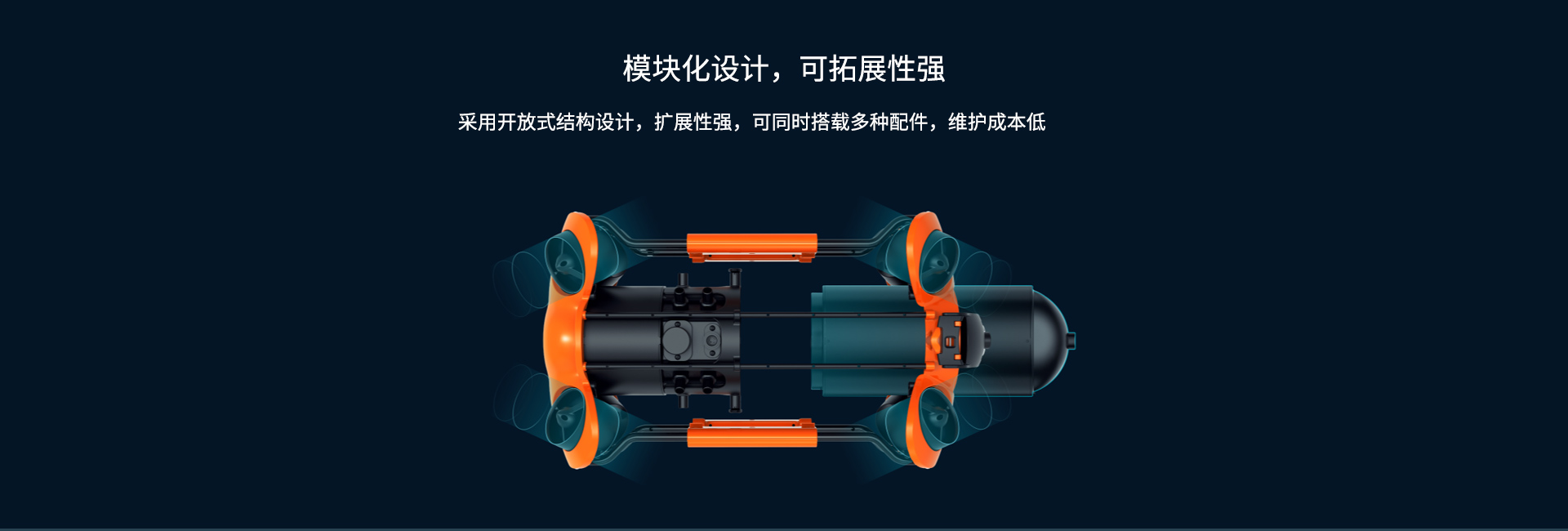 支持配件搭載,滿足多應(yīng)用場景需要:機(jī)械臂、USBL定位、輔助相機(jī)、圖像聲吶、激光卡尺、探照燈、定距聲吶;