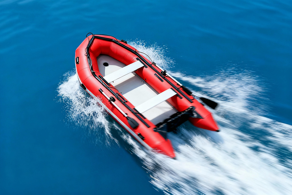 船底型式采用M型充氣拉絲底板,船尾板可匹配30 匹馬力以上的短軸舷外