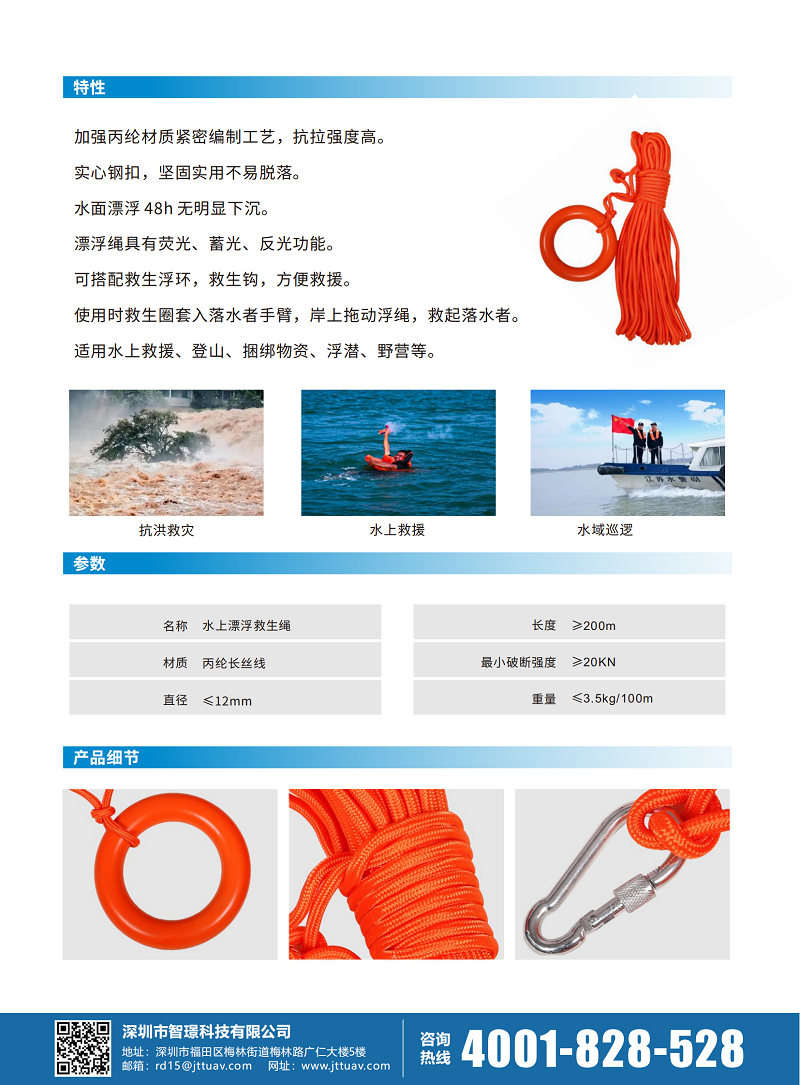 顏色:橘紅色,繩索上有固定永久性標識(標注名稱和型號)