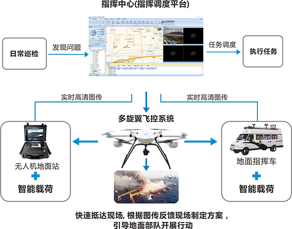 JTT無人機應(yīng)急指揮調(diào)度平臺將無人機飛行平臺與其他業(yè)務(wù)系統(tǒng)無縫隙地連接成一個有機整體,解決無人機在執(zhí)法單位應(yīng)用中存在的技術(shù)難點及應(yīng)用盲區(qū)。